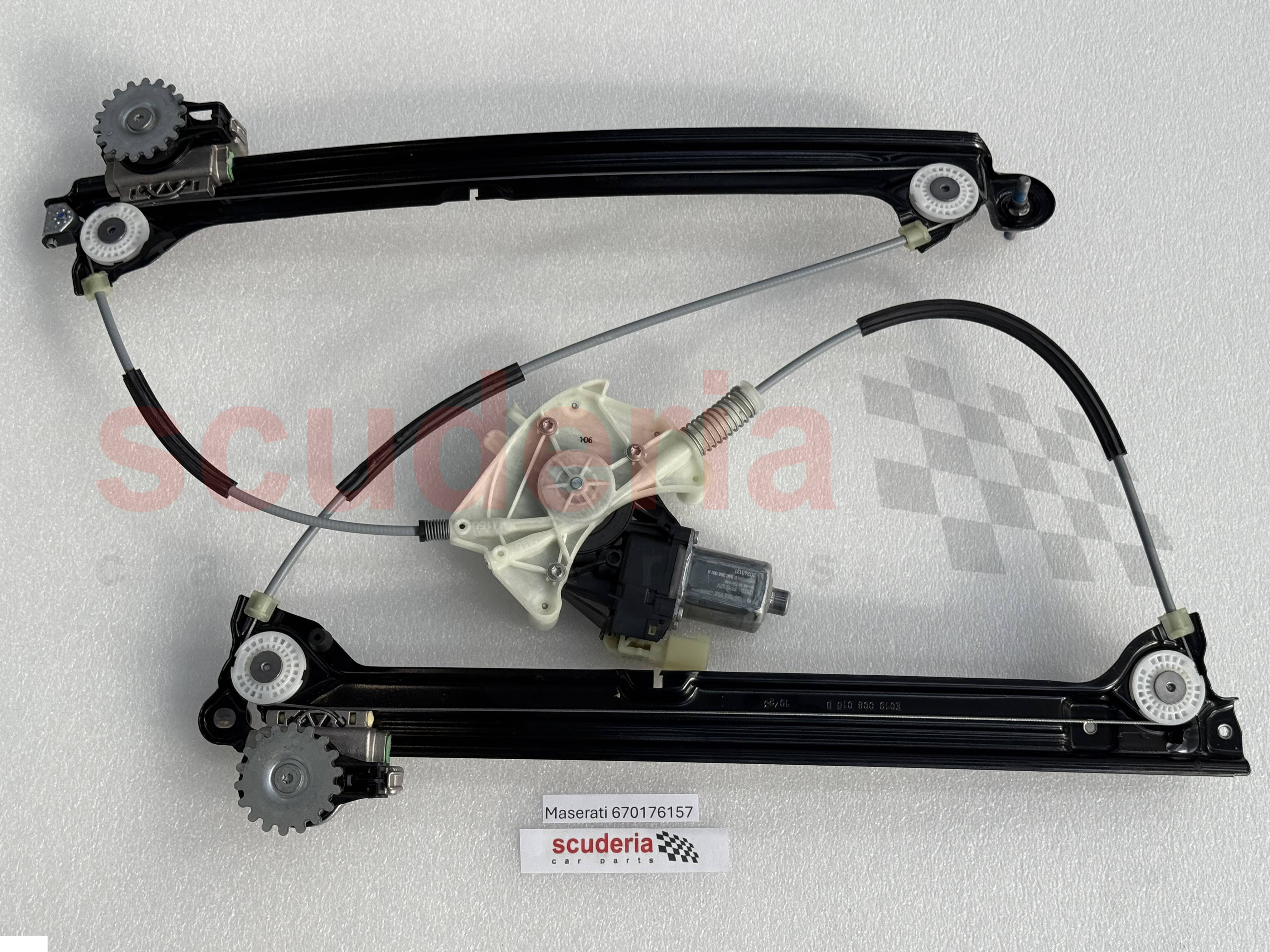 El número de pieza 670176157 es un regulador de elevalunas eléctrico delantero izquierdo de Maserati. Es un componente del sistema de elevalunas eléctrico que controla el movimiento de la ventanilla delantera izquierda.