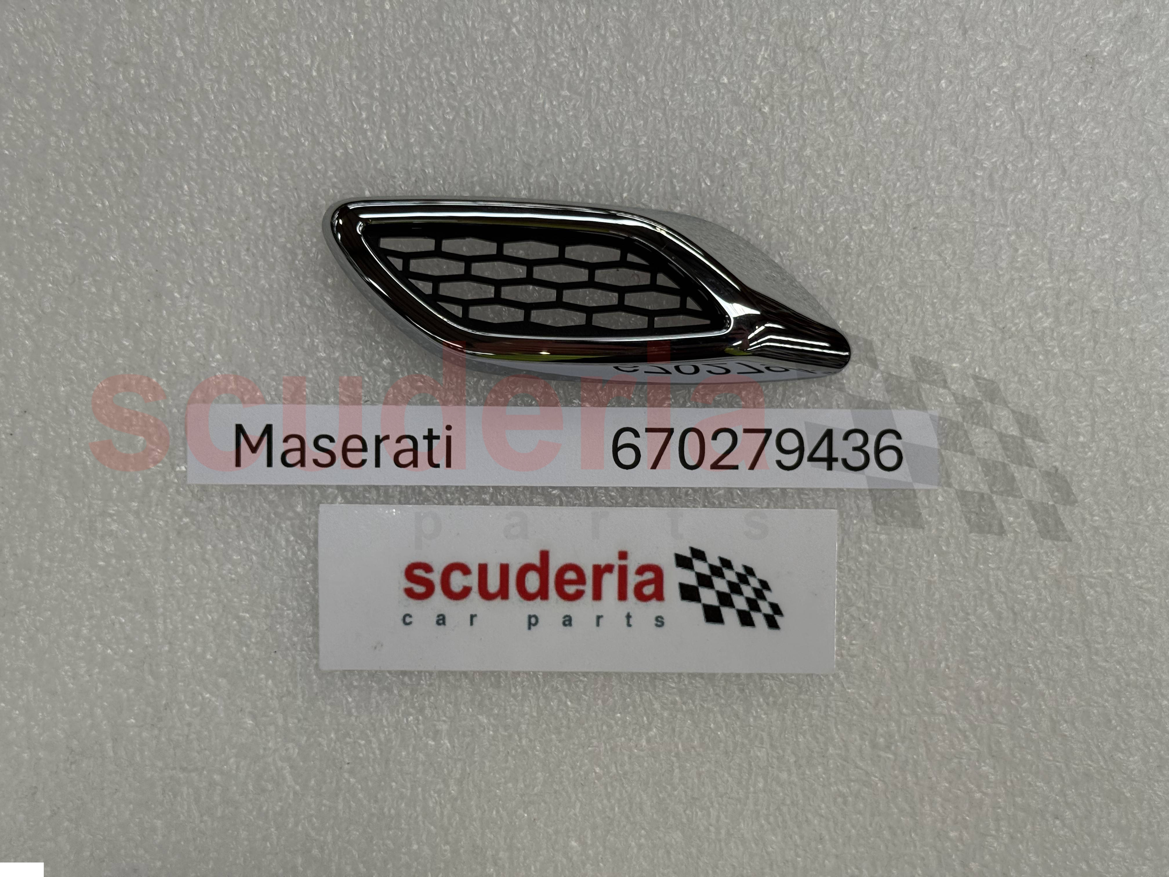 El número de pieza de Maserati 670279436 es una salida de aire del guardabarros izquierdo para el Maserati Levante.