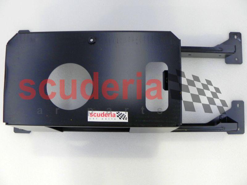 El soporte-batería es de metal y se fija al chasis del coche. Tiene un agujero en el medio por el que encaja la batería y se sujeta mediante pernos.