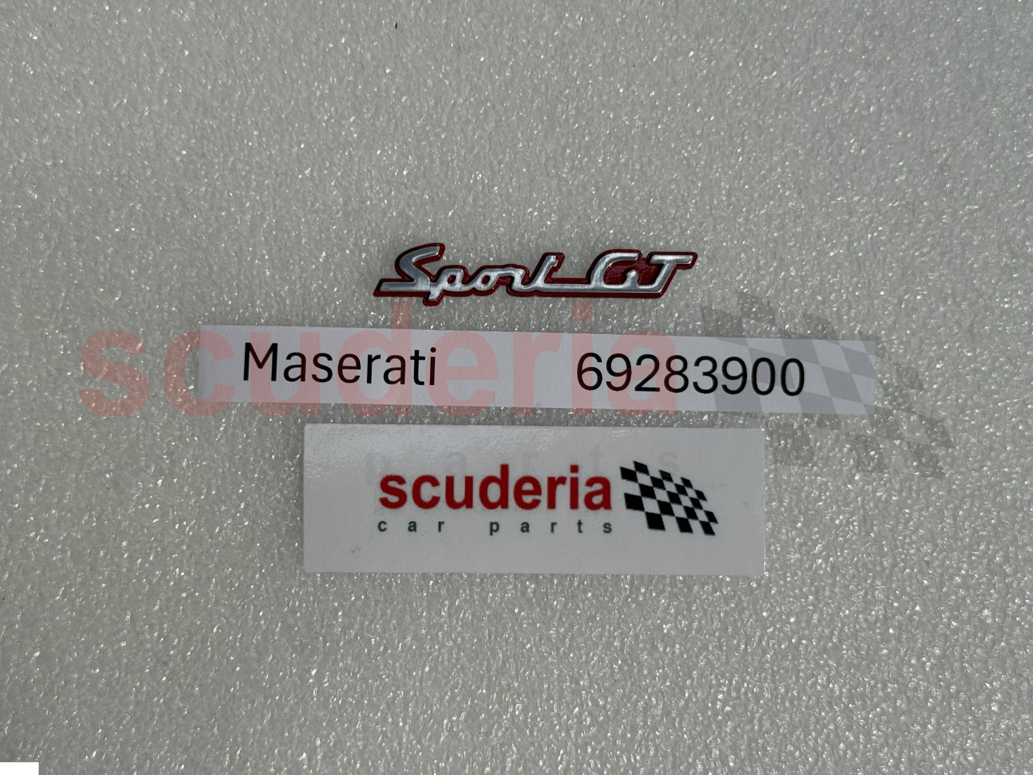 El número de pieza de Maserati 69283900 es una insignia INSCRIPCIÓN SPORT GT, que es una pieza decorativa que se aplica a la tapa del maletero del Maserati Quattroporte. Es una insignia negra con las palabras 'SPORT GT' en letras plateadas. El propósito de la insignia es identificar el vehículo como nivel de equipamiento Sport GT.