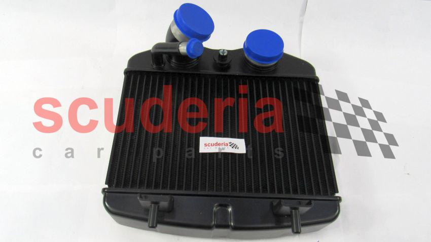 El número de pieza de Ferrari 307469 es el intercooler del lado izquierdo del Ferrari California T. Un intercooler es un intercambiador de calor que enfría el aire que ha sido comprimido por el turbocompresor o sobrealimentador antes. entra al motor. Esto se hace haciendo pasar el aire comprimido a través de una red de tubos que están rodeados por un fluido refrigerante, como agua o anticongelante.