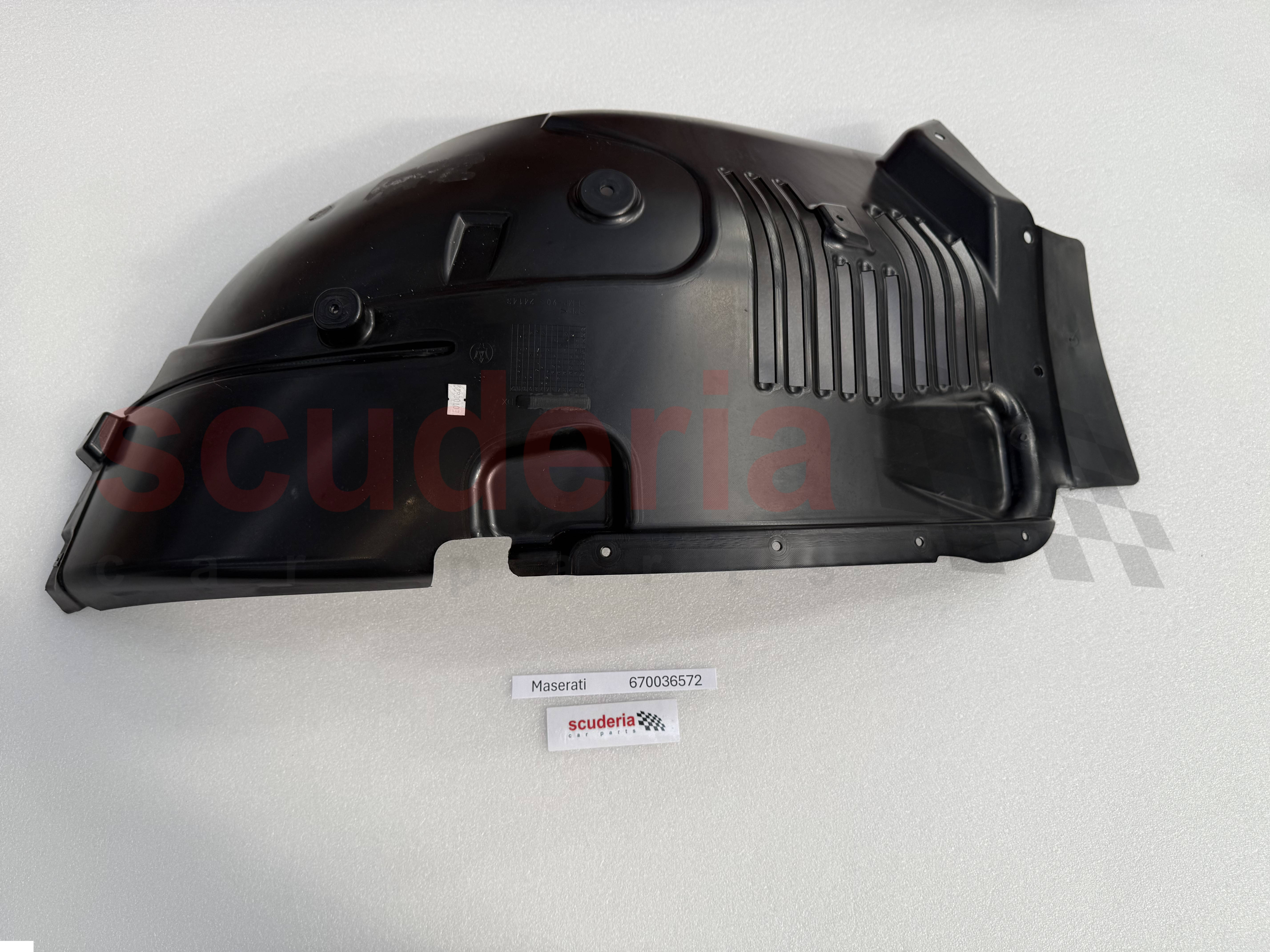 El número de pieza de Maserati 670036572 es un protector de la timonera delantera derecha. Es un panel de metal que cubre la timonera y protege el funcionamiento interno del automóvil de la suciedad, los escombros y la humedad. También desempeña un papel en la aerodinámica, ayudando a dirigir el flujo de aire alrededor de la rueda y reducir la resistencia.