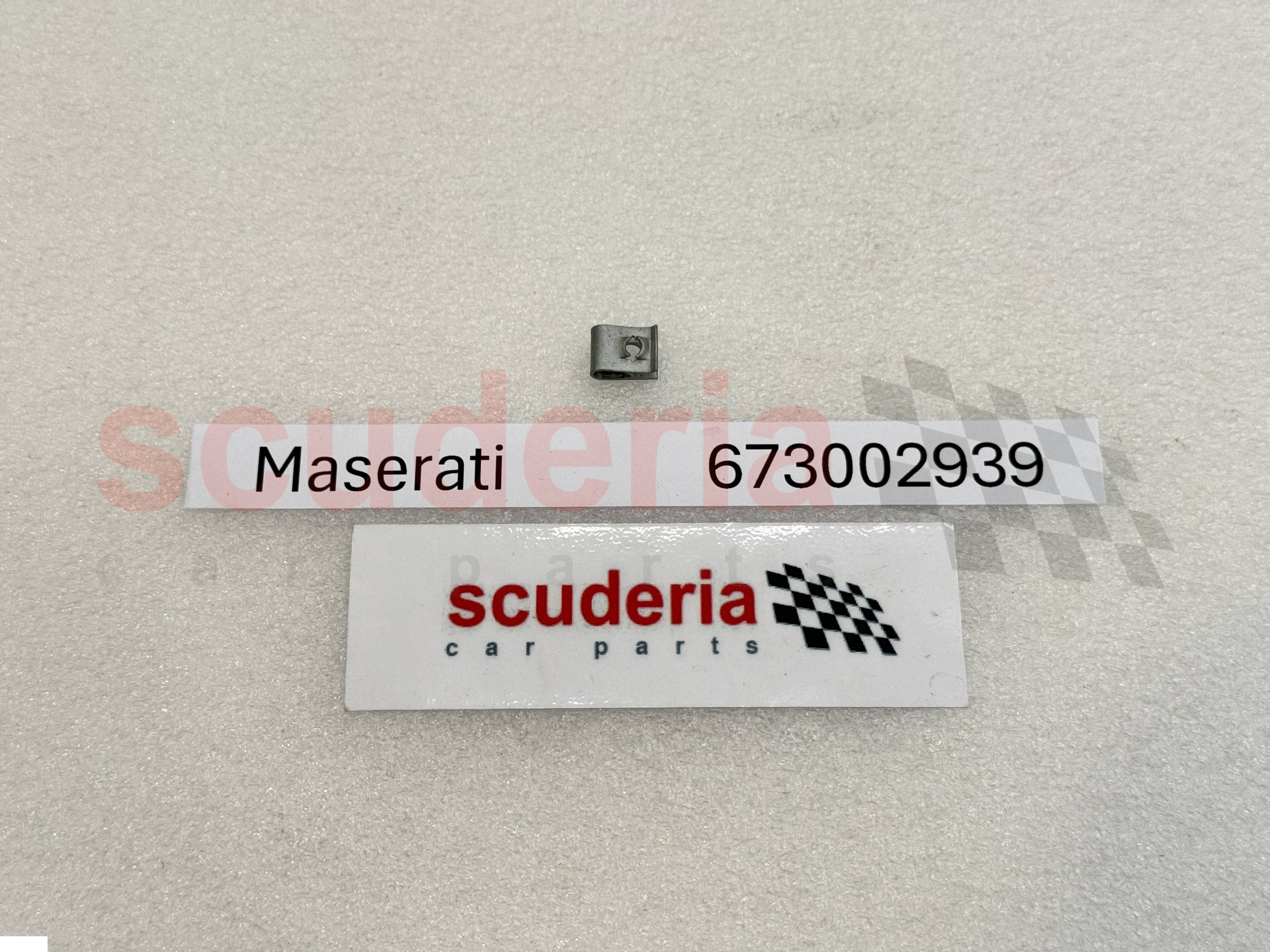 El número de pieza Maserati 673002939 es un clip que se utiliza para fijar la cubierta del parachoques delantero al refuerzo del parachoques delantero en los siguientes vehículos Maserati:
