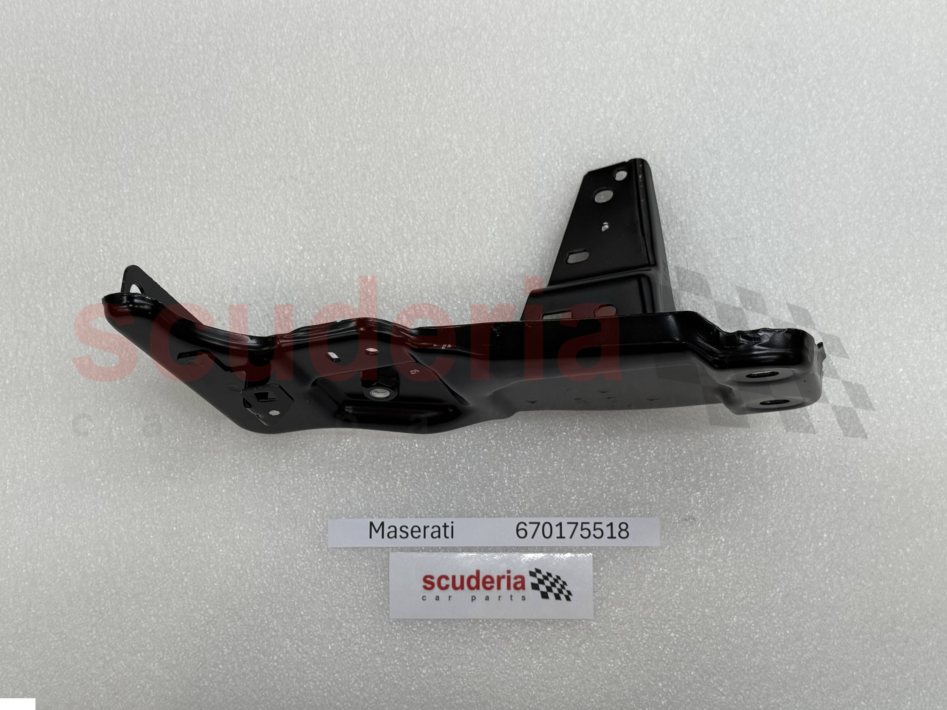 El número de pieza Maserati 670175518 es un soporte derecho que se utiliza para fijar el parachoques trasero al chasis del Maserati Levante. Está situado en el lado derecho del vehículo, detrás de la rueda trasera.